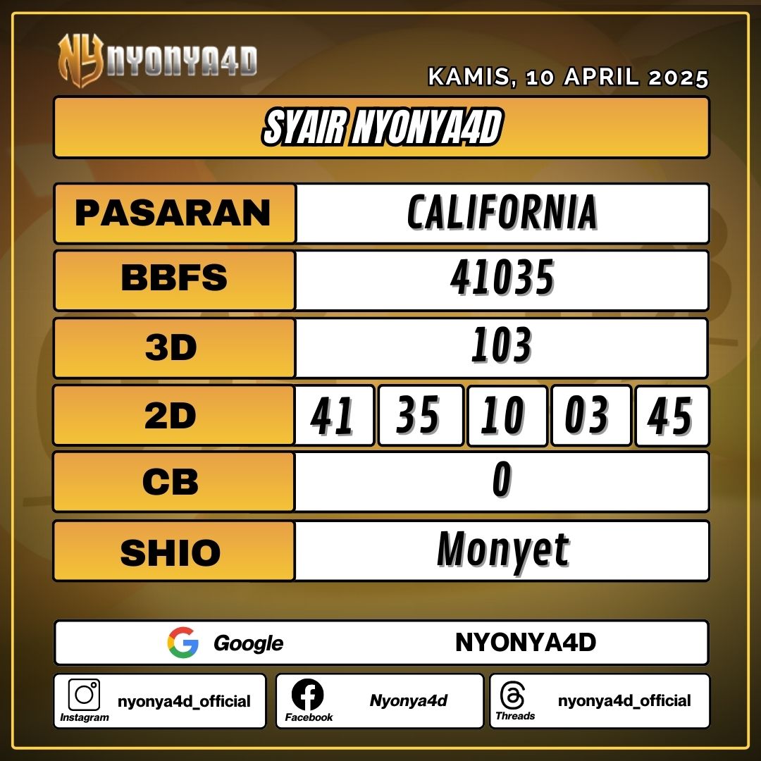 Data Keluaran dan Paito Warna California merupakan kumpulan result yang diambil dari website resmi https://www.usatoday.com/lottery/us-ca dengan tujuan untuk mempermudah master-master dalam meracik rumusan angka di pasaran California. Result Pasaran California setiap hari di jam 08:30 WIB