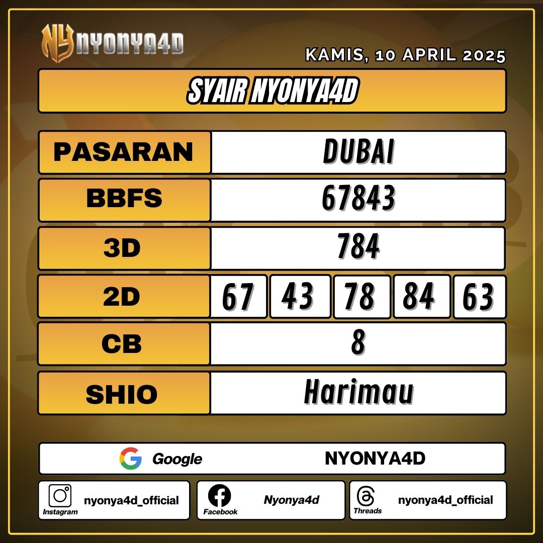 Data Keluaran dan Paito Warna Dubai merupakan kumpulan result yang diambil dari website resmi https://www.dubaialyansib.com dengan tujuan untuk mempermudah master-master dalam meracik rumusan angka di pasaran Dubai. Result Pasaran Dubai setiap hari di jam 23:25 WIB