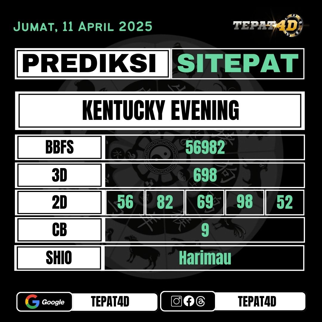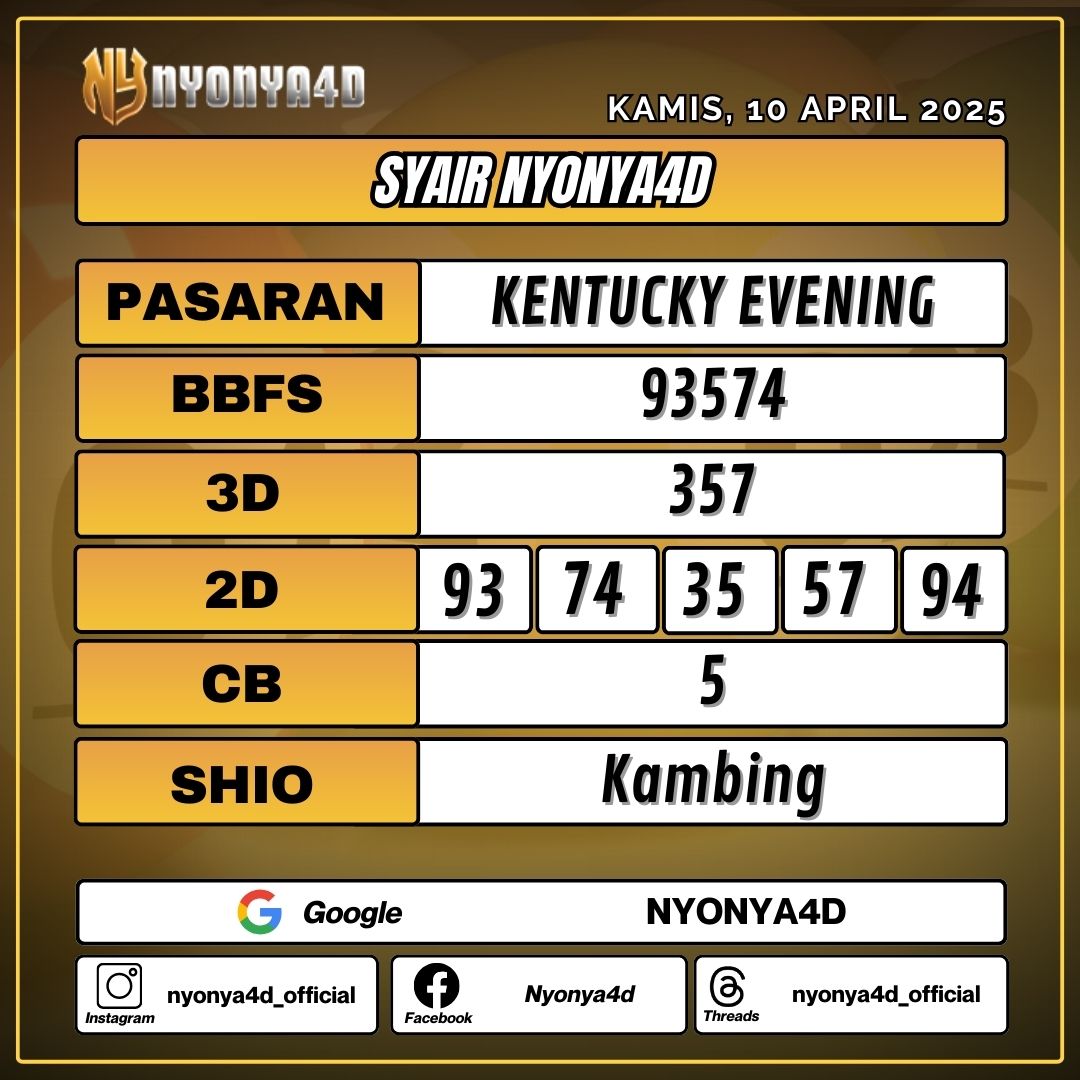 Data Keluaran dan Paito Warna Kentucky merupakan kumpulan result yang diambil dari website resmi https://www.usatoday.com/lottery/us-ky dengan tujuan untuk mempermudah master-master dalam meracik rumusan angka di pasaran Kentucky Evening. Result Pasaran Kentucky Evening setiap hari di jam 10:00 WIB