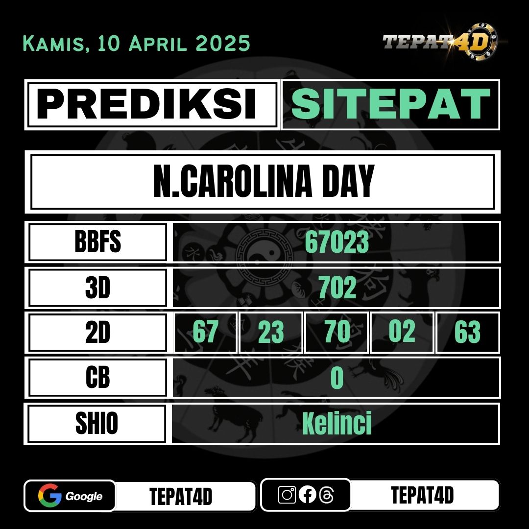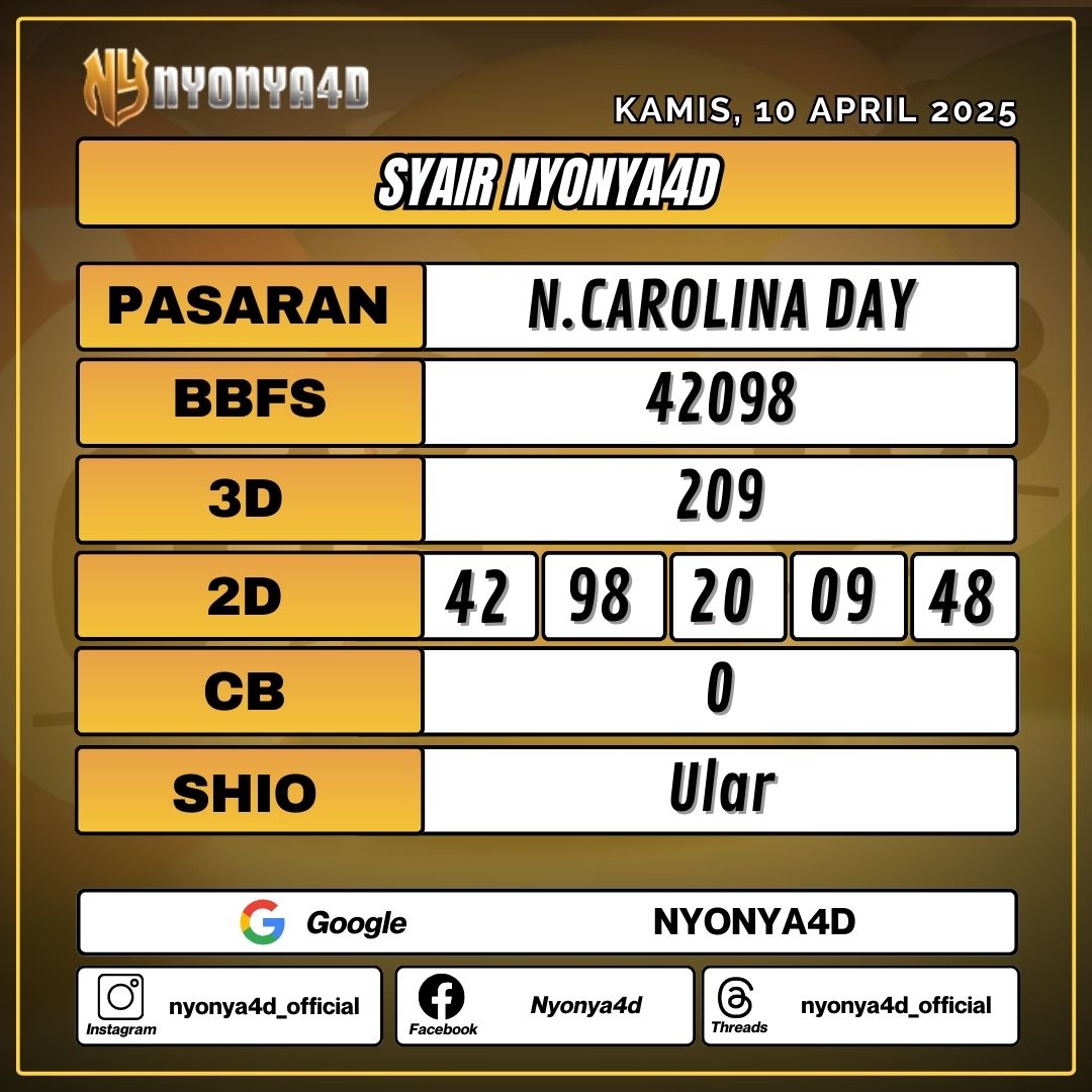 Data Keluaran dan Paito Warna N.Carolina merupakan kumpulan result yang diambil dari website resmi www.nclottery.com dengan tujuan untuk mempermudah master-master dalam meracik rumusan angka di pasaran N.Carolina Day. Result Pasaran N.Carolina Day setiap hari di jam 02:00 WIB